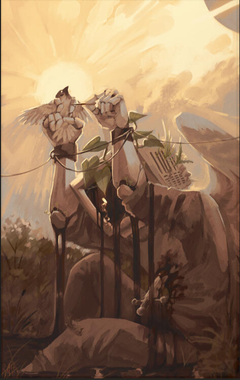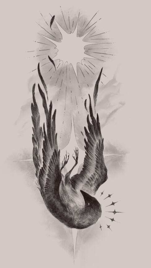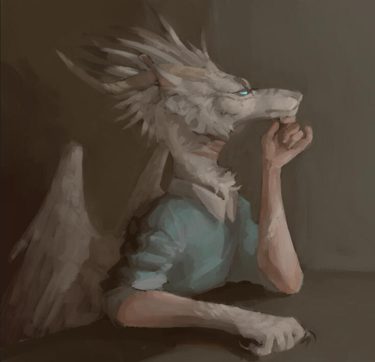 What I will draw:- I can create album cover/product/poster/book cover designs for you if you'd like, but be detailed with your specifications of what you desire.- I will draw mild gore if requested. Specify what you'd want and we can work it out.- With detailed paintings, please know I work best with animalistic, or otherwise un-human characters (typically, birds & dragons are my expertise here).-with plain paintings, I can focus more on humanoid features and/or robotic characteristics.- With sketches, I can generally do anything you desire.- I can draw object gijinkas if desired as well.- If wanted, I can mess with character designs given to me and experiment!